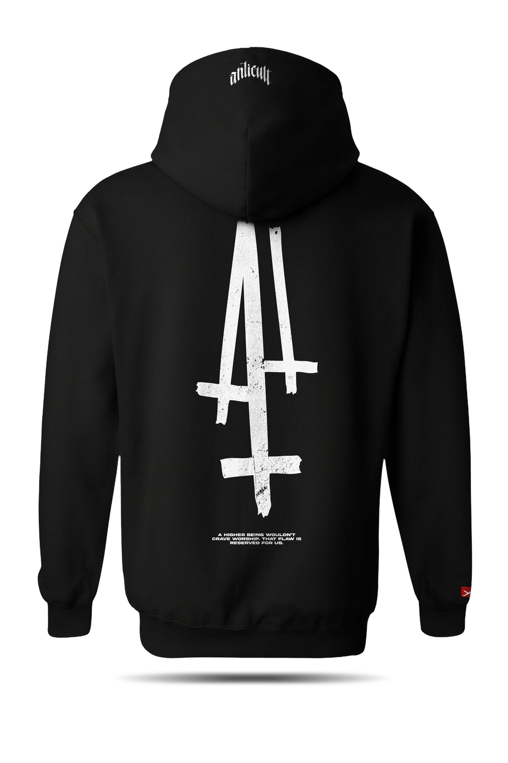 Vorne setzt der Godless Drip Schriftzug den Ton – roh, auffällig, typisch ANTICULT. Auf der Rückseite folgt das große Anticult Logo mit passendem Statement, ergänzt durch mehrere kleine Detailprints, die den Hoodie visueller machen, ohne überladen zu wirken.