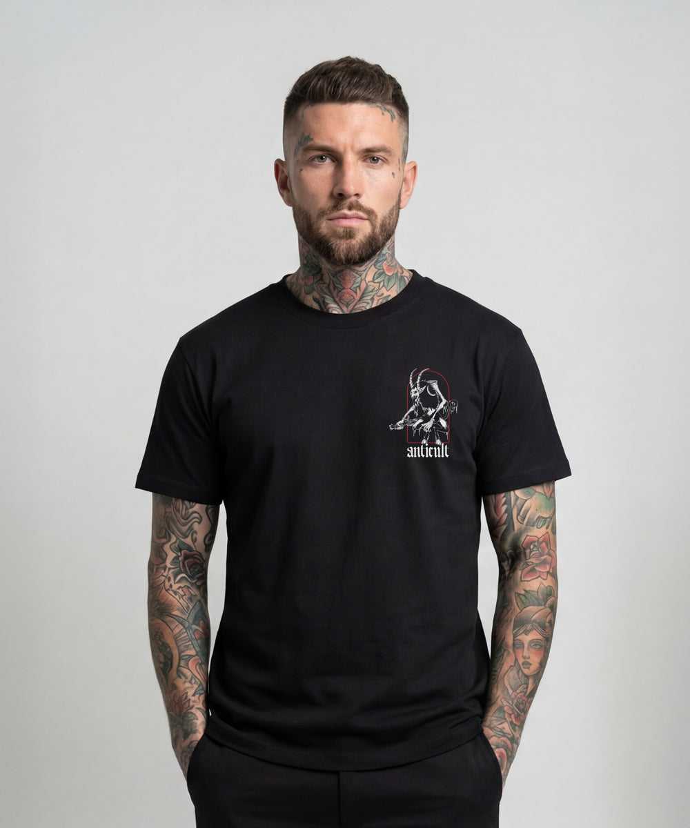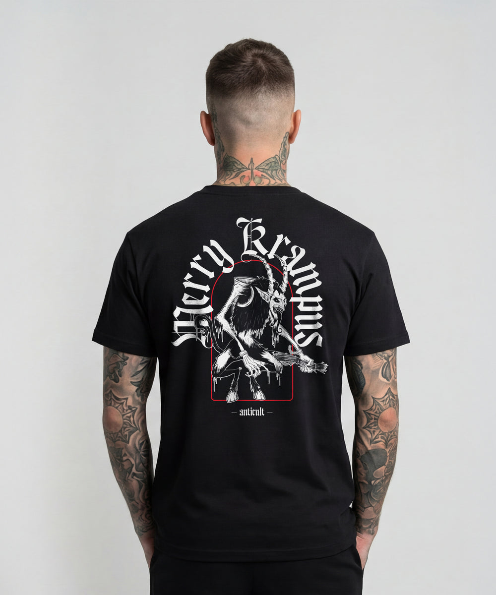 Das ANTICULT „Merry Krampus“ Shirt ist das Gegenteil von besinnlich. Handgezeichnetes Krampus-Artwork, klare Linien, starker Kontrast. Kein Weihnachtskitsch, kein Nikolaus-Gelaber. Einfach düsteres Streetwear-Zeug für die kalte Jahreszeit.